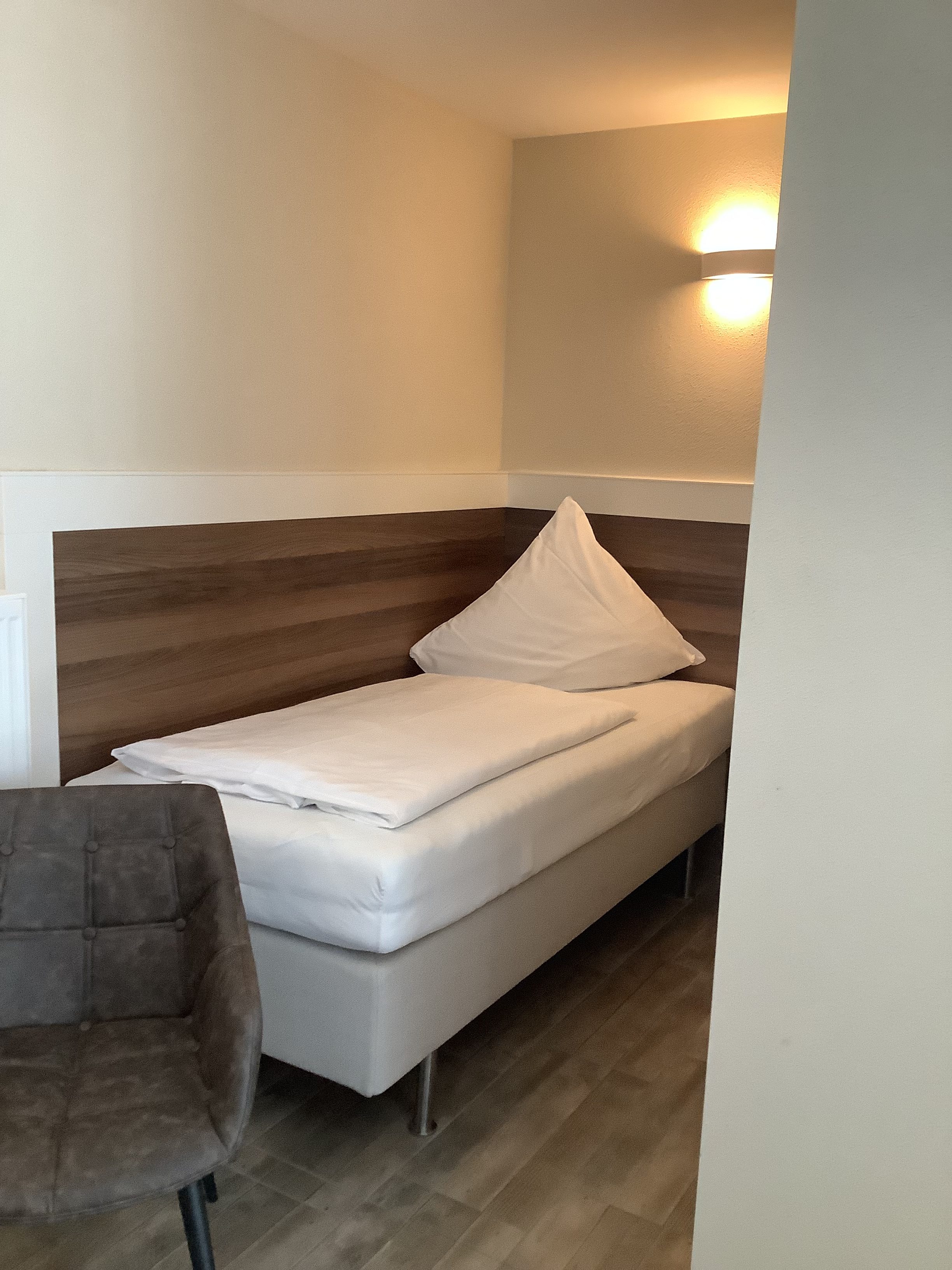 Unsere Einzelzimmer sind wie alle Zimmer ausgestattet mit Dusche, WC, TV, Haartrockner und Telefon. Bettgröße 90 cm x 200 cm